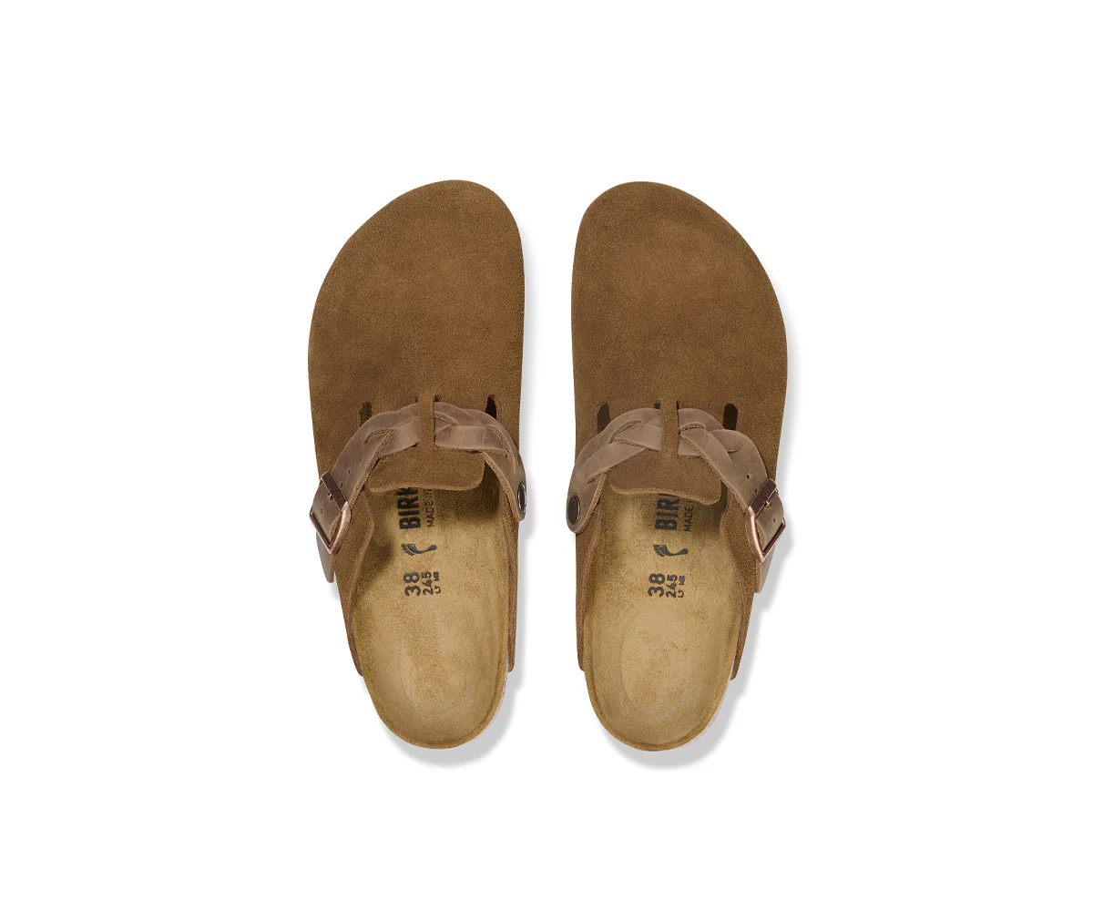 BIRKENSTOCK Boston sono un vero classico da indossare facilmente durante tutto l’anno. Sono regolabili individualmente e il loro design raffinato li ha resi delle vere e proprie leggende. Qui il modello si presenta con un dettaglio particolare: i cinturini sono lavorati con motivo a intreccio e sono perfetti per i moderni stili boho. La tomaia è composta da pelle scamosciata particolarmente morbida, che aderisce al piede come una seconda pelle.