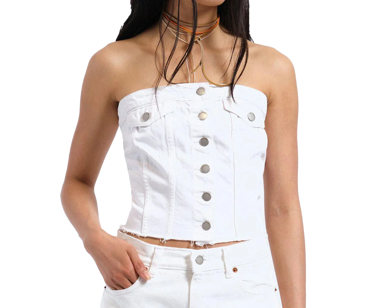Carli Tube Denim Top - White